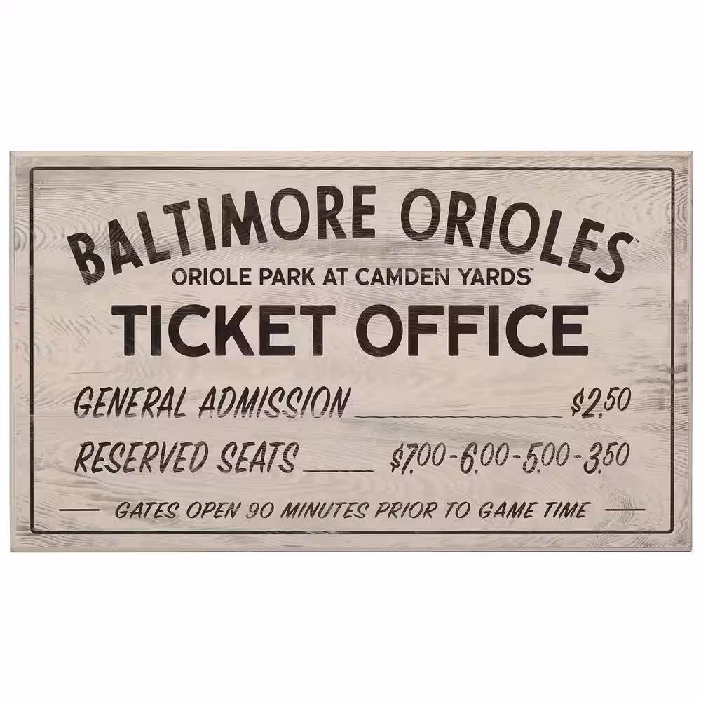 Open Road Brands Baltimore Orioles Vintage Ticket Office Wood Wall Decor