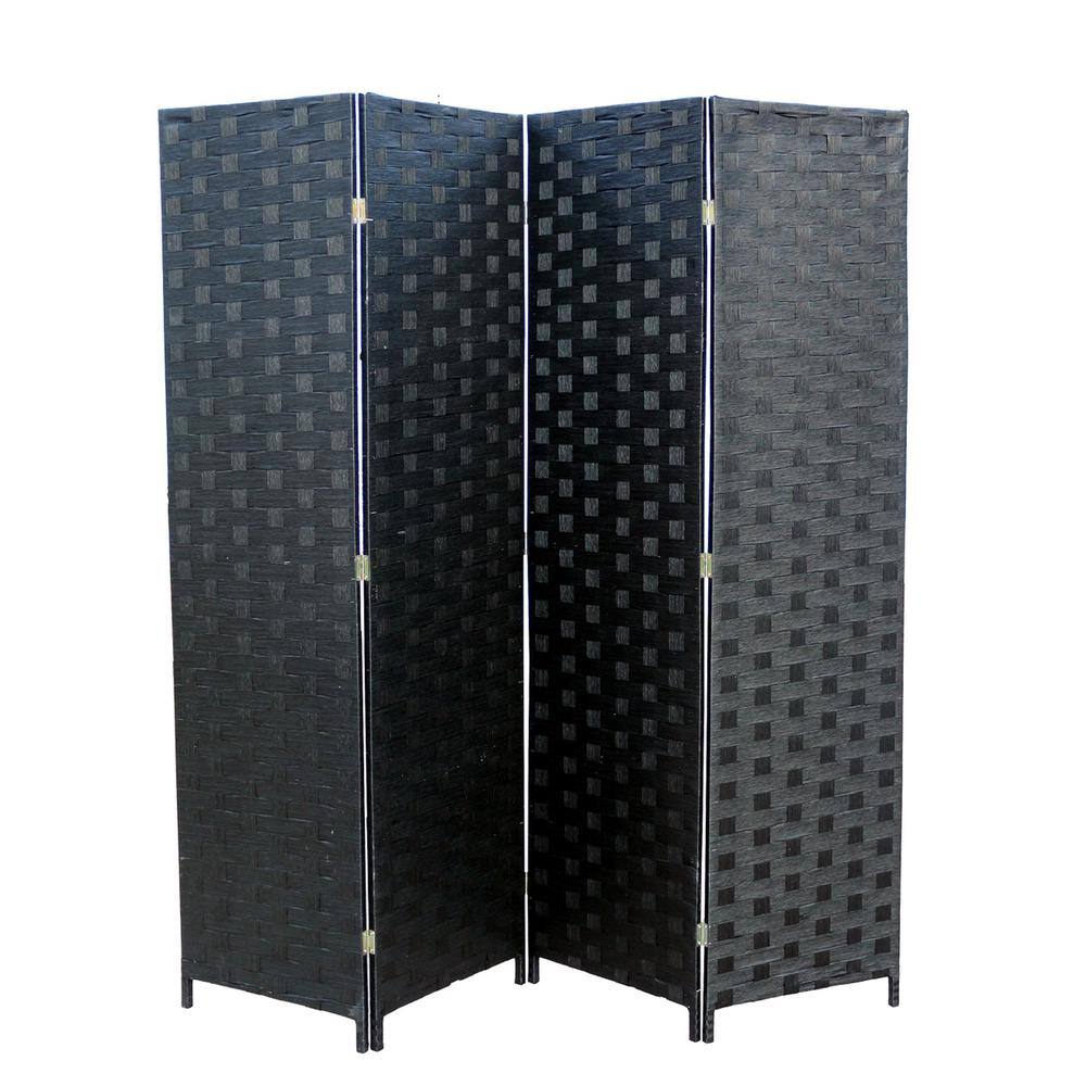 ORE International Black Paper Straw Weave 4 - -Panel Screen on 2 in. H Wooden Legs, Handcrafted Room Divider