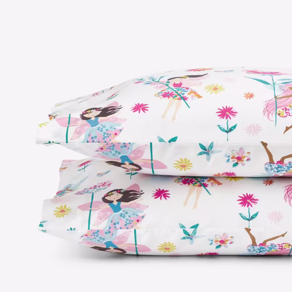 The Company Store Floral Fairies Organic Cotton Percale Multi Cotton Standard Pillowcases (Set of 2)