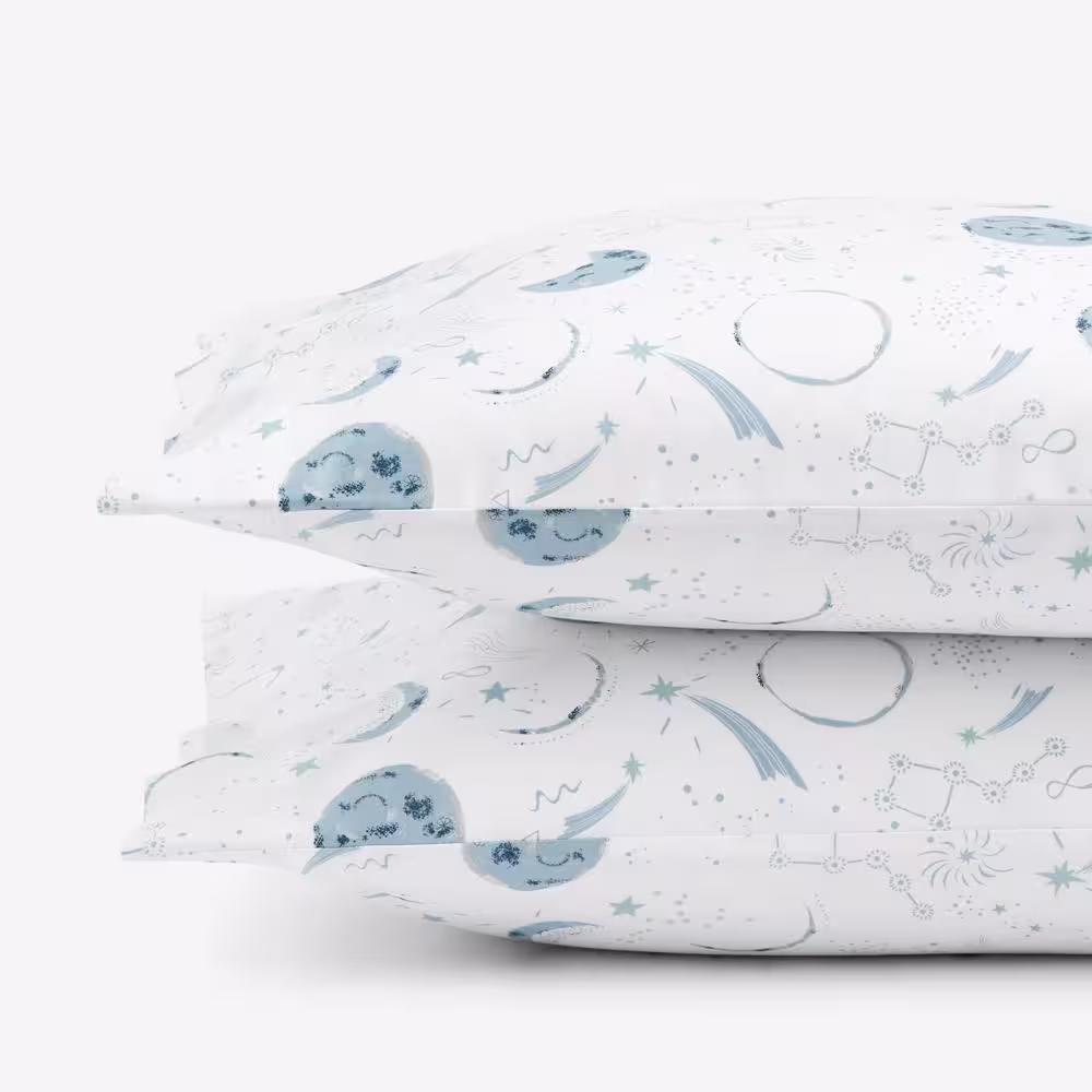 Company Kids by The Company Store Company Kids Night Sky Blue Multi Organic Cotton Percale Standard Pillowcase (Set of 2)