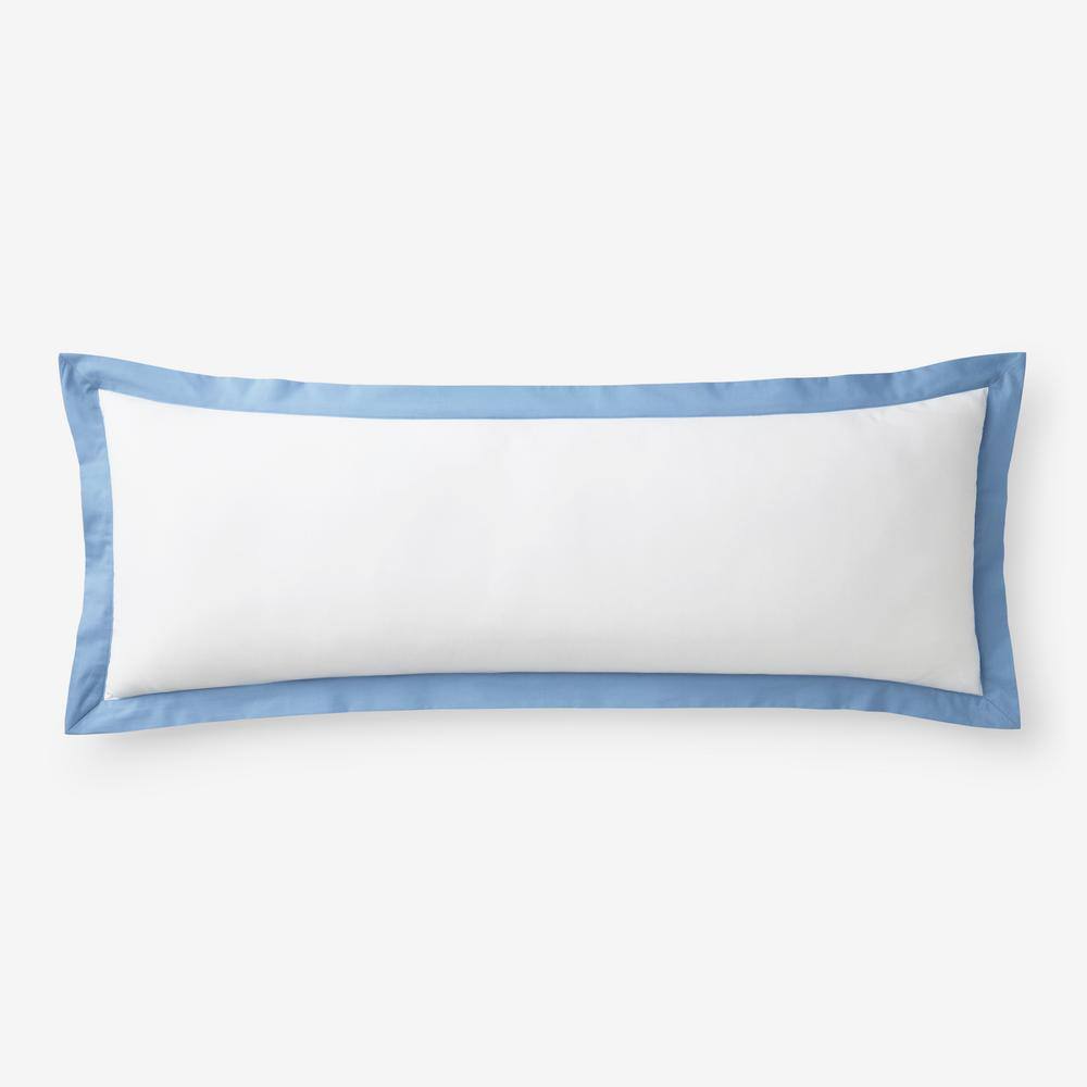 The Company Store Company Cotton Solid Border Percale Lumbar Decorative Porcelain Blue 14 in. x 40 in. Throw Pillow Cover