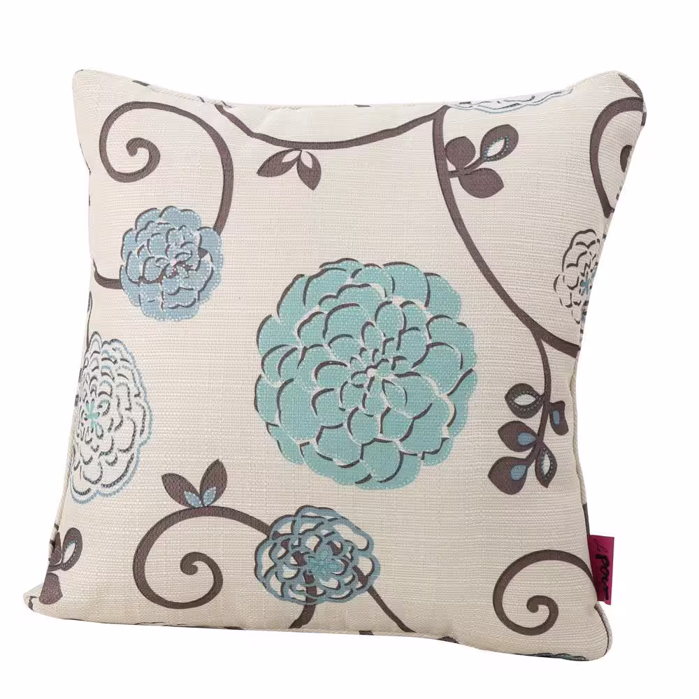 Noble House Ippolito White and Blue Floral Polyester 18 inch x 18 inch Throw Pillow