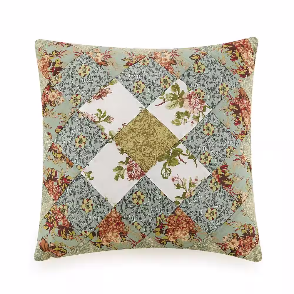 MODERN HEIRLOOM Olivia Green Patchwork Square 16 in. x 16 in. Decorative Pillow