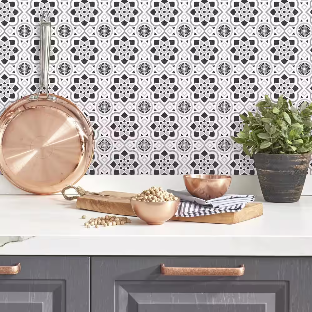 smart tiles Ravenna Roma Gray 9.80 in. x 9.74 in. Vinyl Peel and Stick Tile (2.48 sq. ft./4-pack)