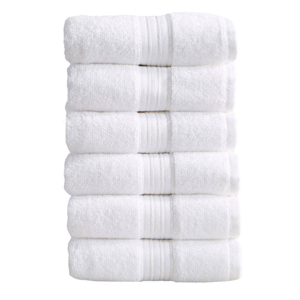 FRESHFOLDS White Solid 100% Cotton Hand Towel (Set of 6)