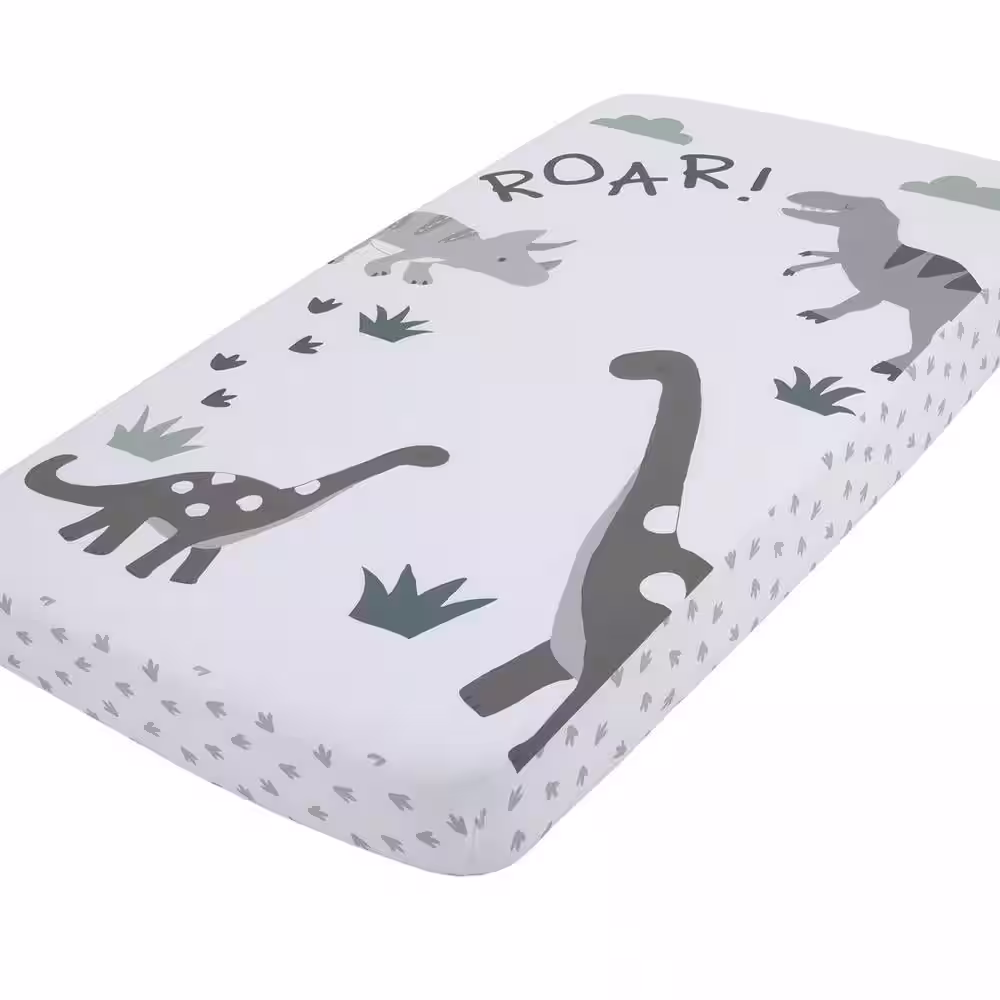 NoJo Baby-Saurus Photo Op ROAR White, Gray, and Green Dinosaur with Clouds Nursery Fitted Crib Sheet