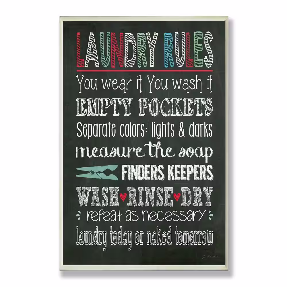 Stupell Industries 12.5 in. x 18.5 in. "Laundry Rules Typography Chalkboard" by Jo Moulton Printed Wood Wall Art