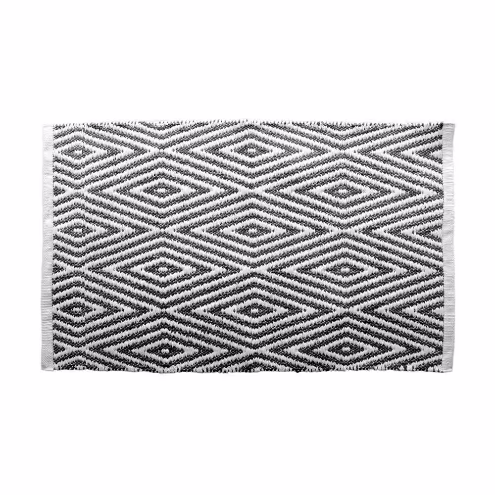 None Oxford Bath Mat 20 in. x 32 in. Cotton Black/White