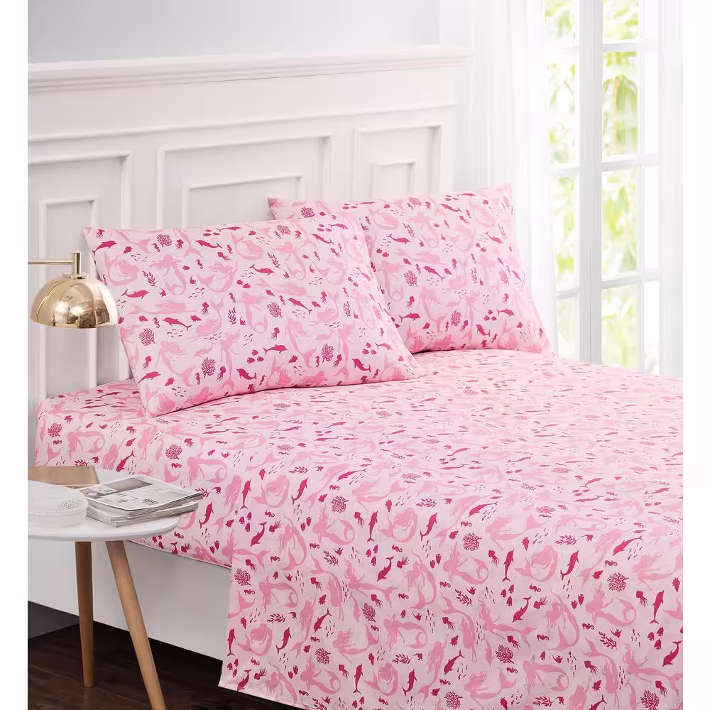 Harper Lane Pretty Mermaid 3-Piece Pink Microfiber Twin Sheet Set