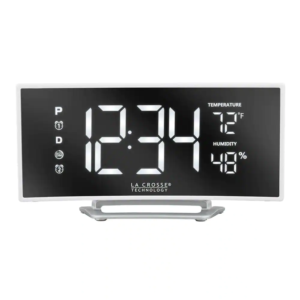 La Crosse Technology Curved Mirror LED Alarm Clock with Temperature & Humidity, USB Port