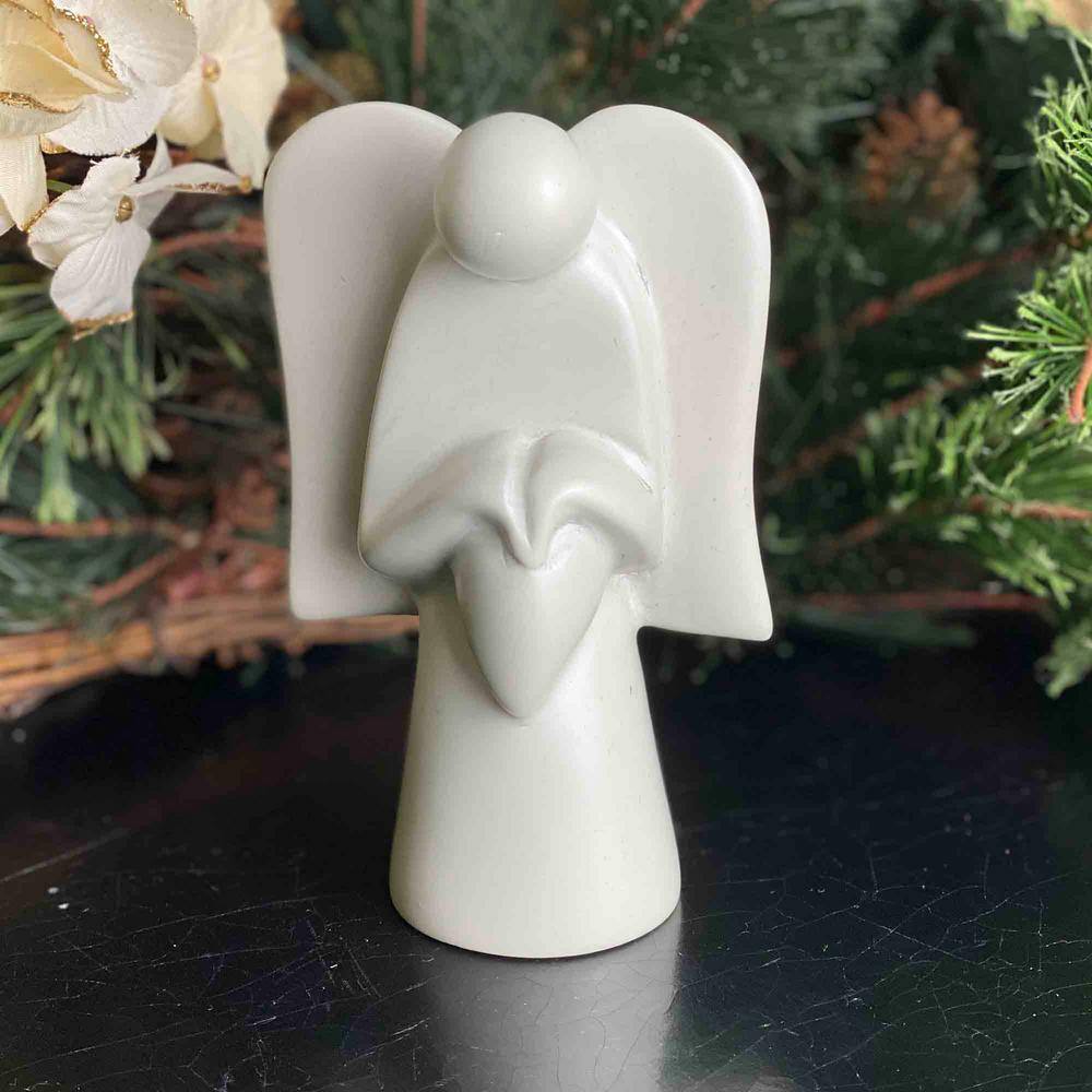 None Beige Angel Holding Heart Soapstone Sculpture