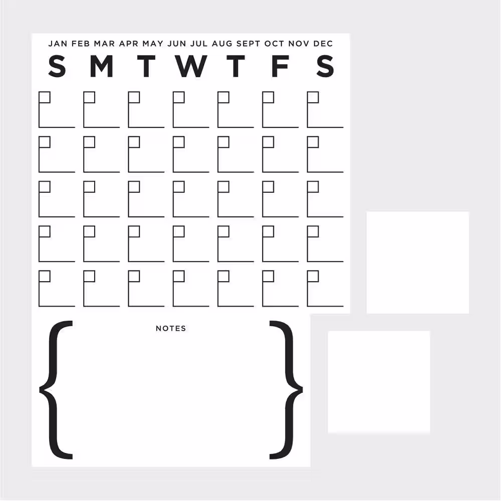 RoomMates Black and White Dry Erase Calendar Peel and Stick Giant Wall Decal Set