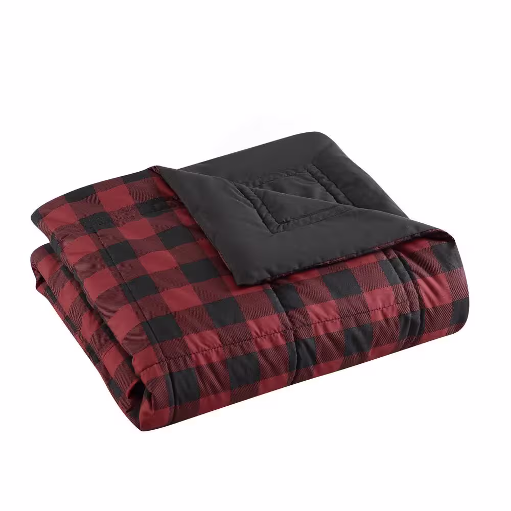 EDDIE BAUER Mountain Plaid 1-Piece Red Down Microfiber 50X70 Throw Blanket