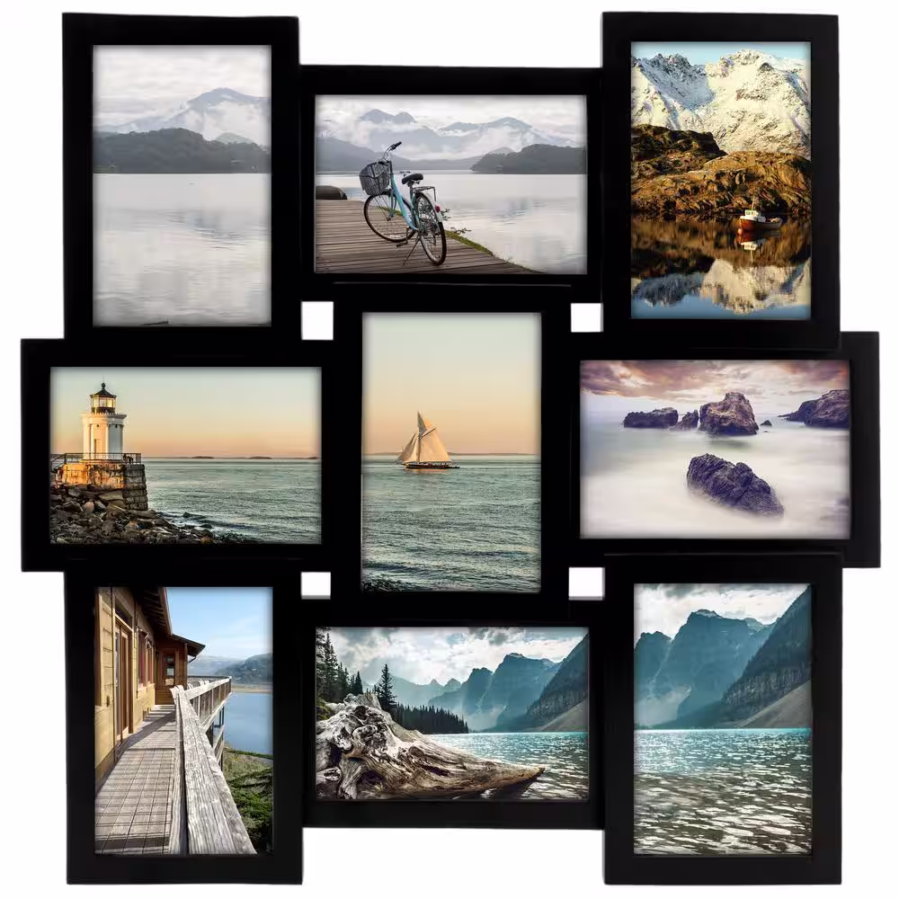 Malden International Designs 9-4 in. x 6 in. Black 9-Opening Home Profiles Puzzle Collage Picture Frame