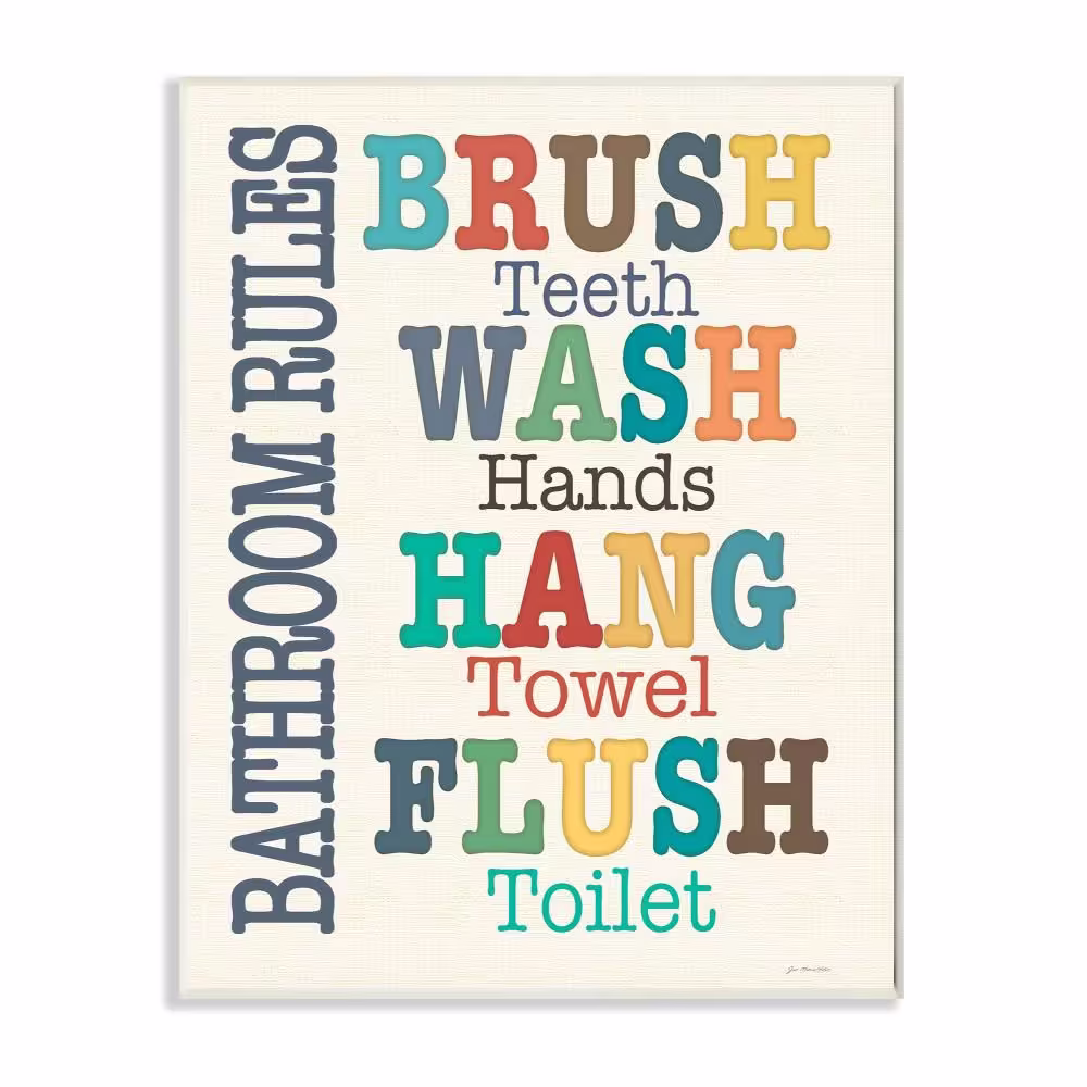 Stupell Industries 12.5 in. x 18.5 in. "Colorful Bathroom Rules Typography Art" by Jo Moulton Printed Wood Wall Art