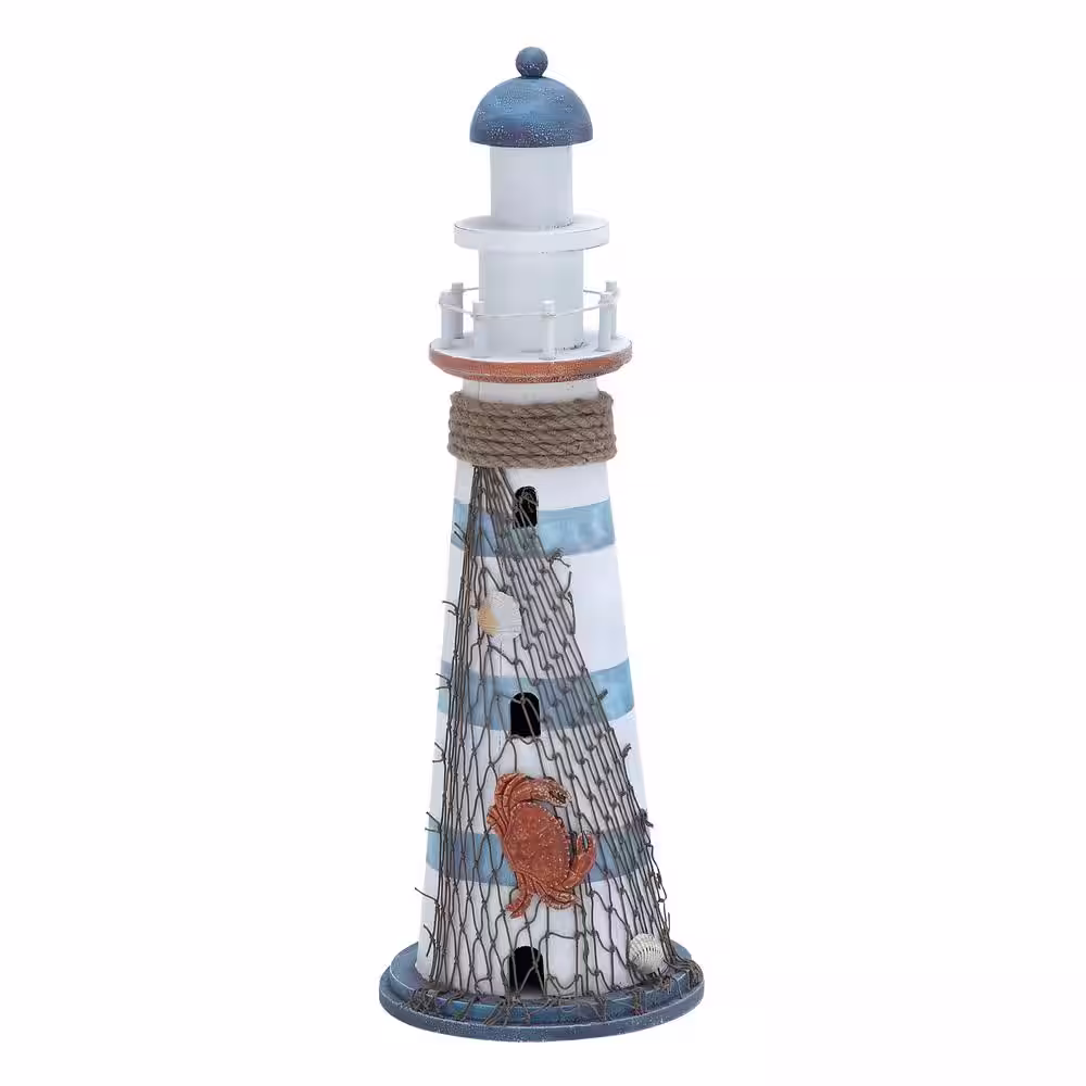 Litton Lane White Wood Light House Sculpture with Netting