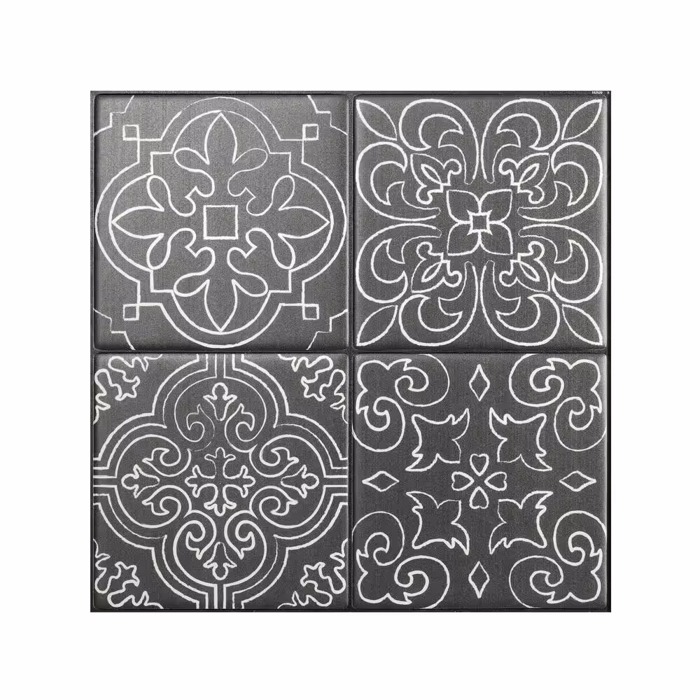 smart tiles Vintage Vinci Black 9 in. x 9 in. Vinyl Peel and Stick Tile (2.22 sq. ft. / 4 pack)