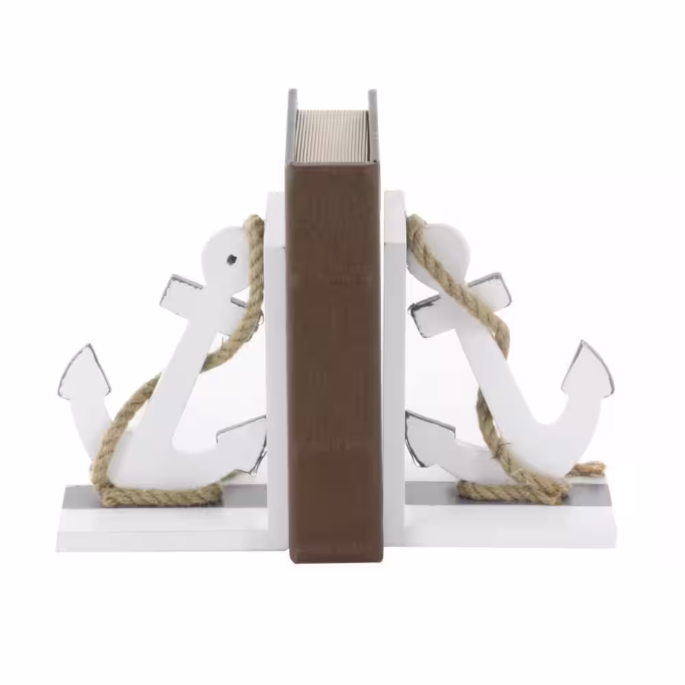 Litton Lane White Wood Anchor Bookends with Rope Detail (Set of 2)