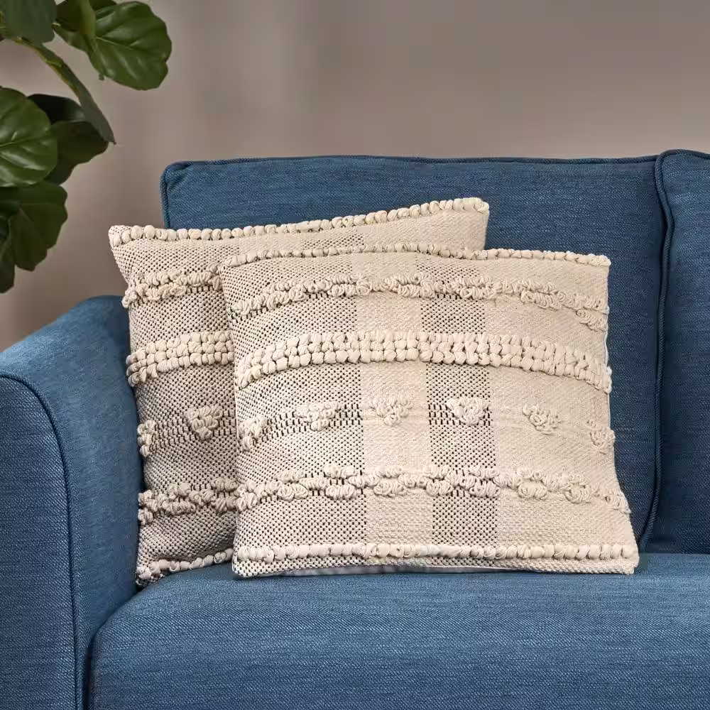 Noble House Blaisedell Natural and Light Grey Geometric Zipper 18 in. x 18 in. Throw Pillow Cover (Set of 2)