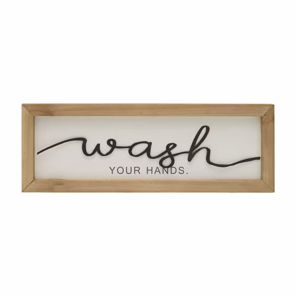 None Farmhouse Wash Your Hands Bathroom Wood and Metal Wall Decorative Sign