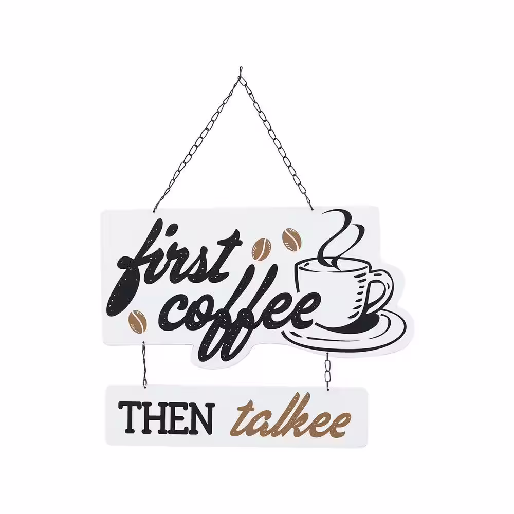 None First Coffee Then Talkee Wood Wall Plaque with Metal Chain Hanger Decorative Sign