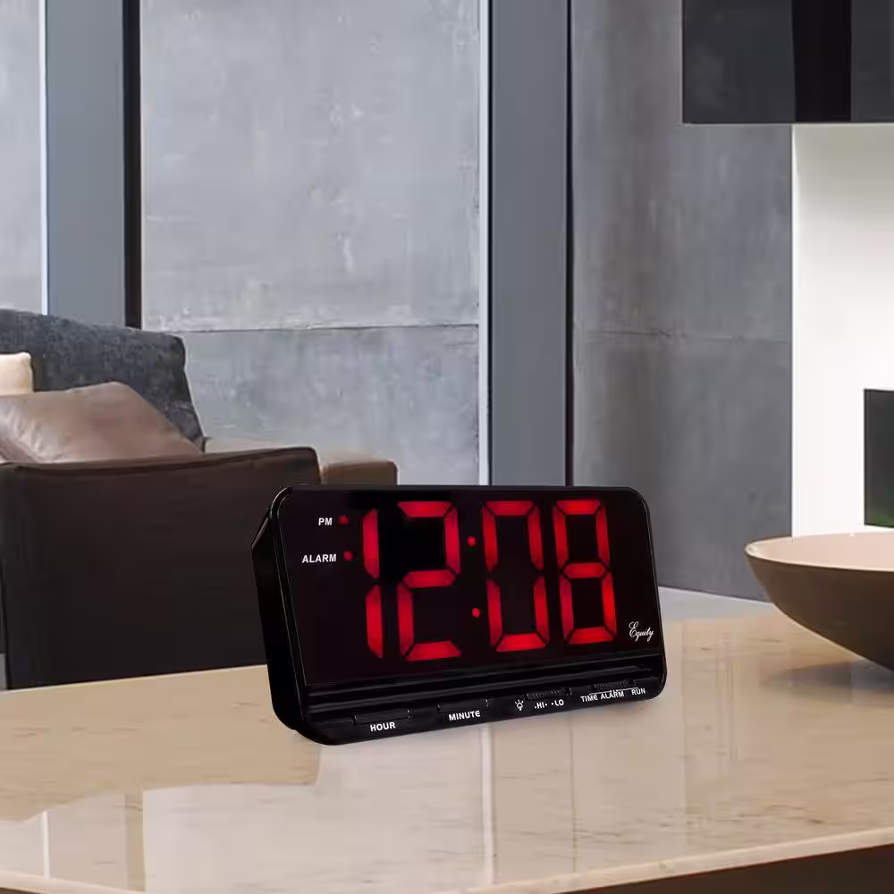 Equity by La Crosse Extra-Large 3 in. Red LED Electric Alarm Table Clock with HI/LO Settings