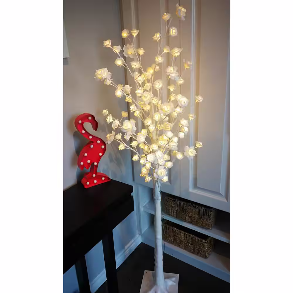 Peterson Artwares 70 in. Pre-Lit White Artificial Rose Lighted Tree with 96-Warm White LED Lights and stand
