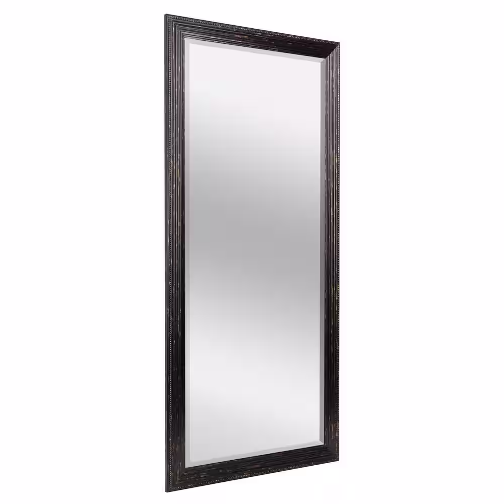 Deco Mirror 53.5 in. H x 29.5 in. Rustic W Beaded Textured Distressed Black and Gold Framed Full Sized Wall Mounted Dressing Mirror