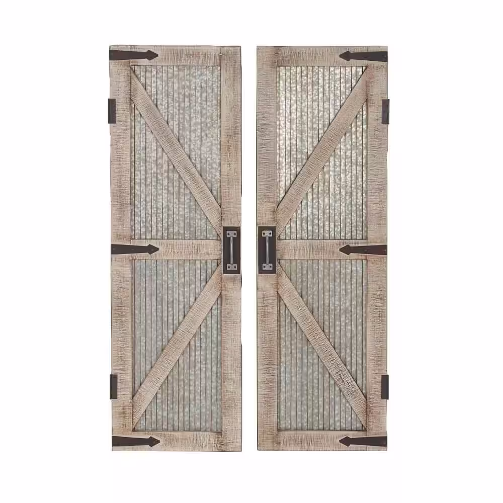 Litton Lane Metal Silver Barn Door Geometric Wall Decor (Set of 2)