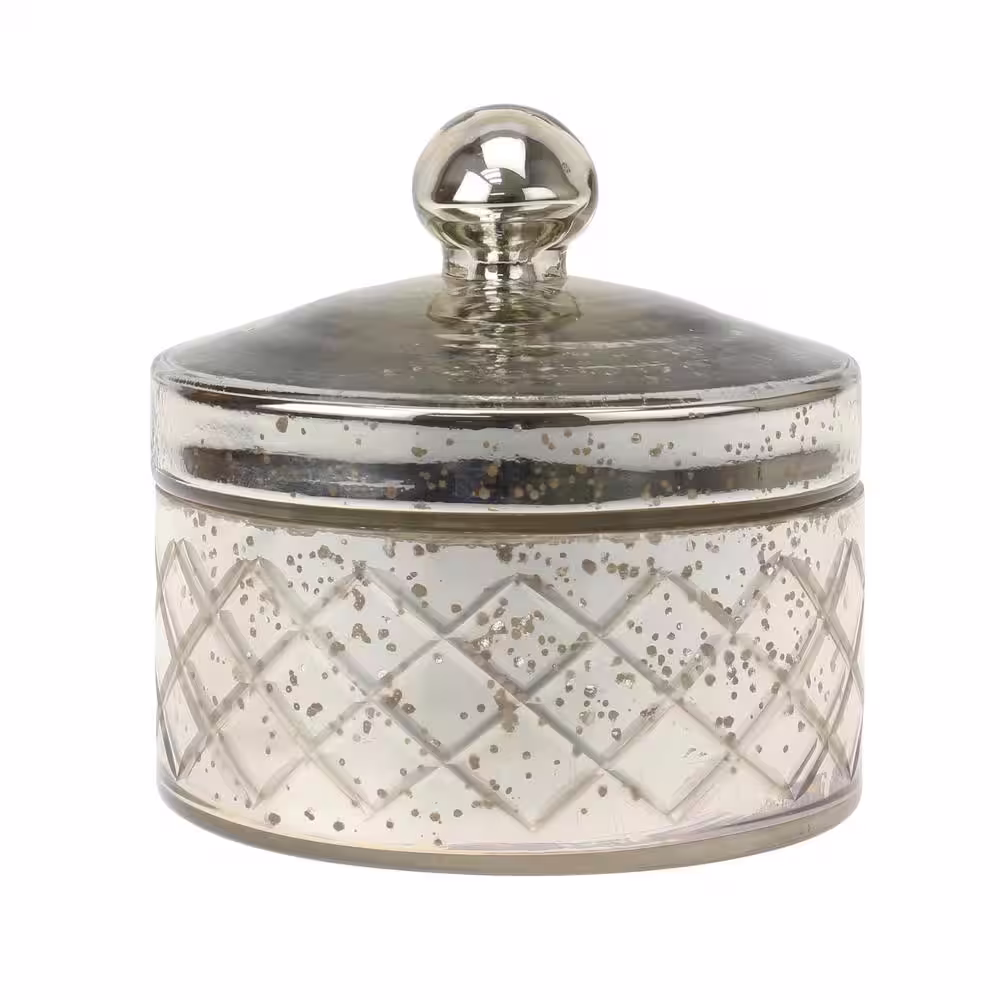 Stonebriar Collection 5 in. x 5 in. Antique Mercury Round Textured Glass Trinket Box