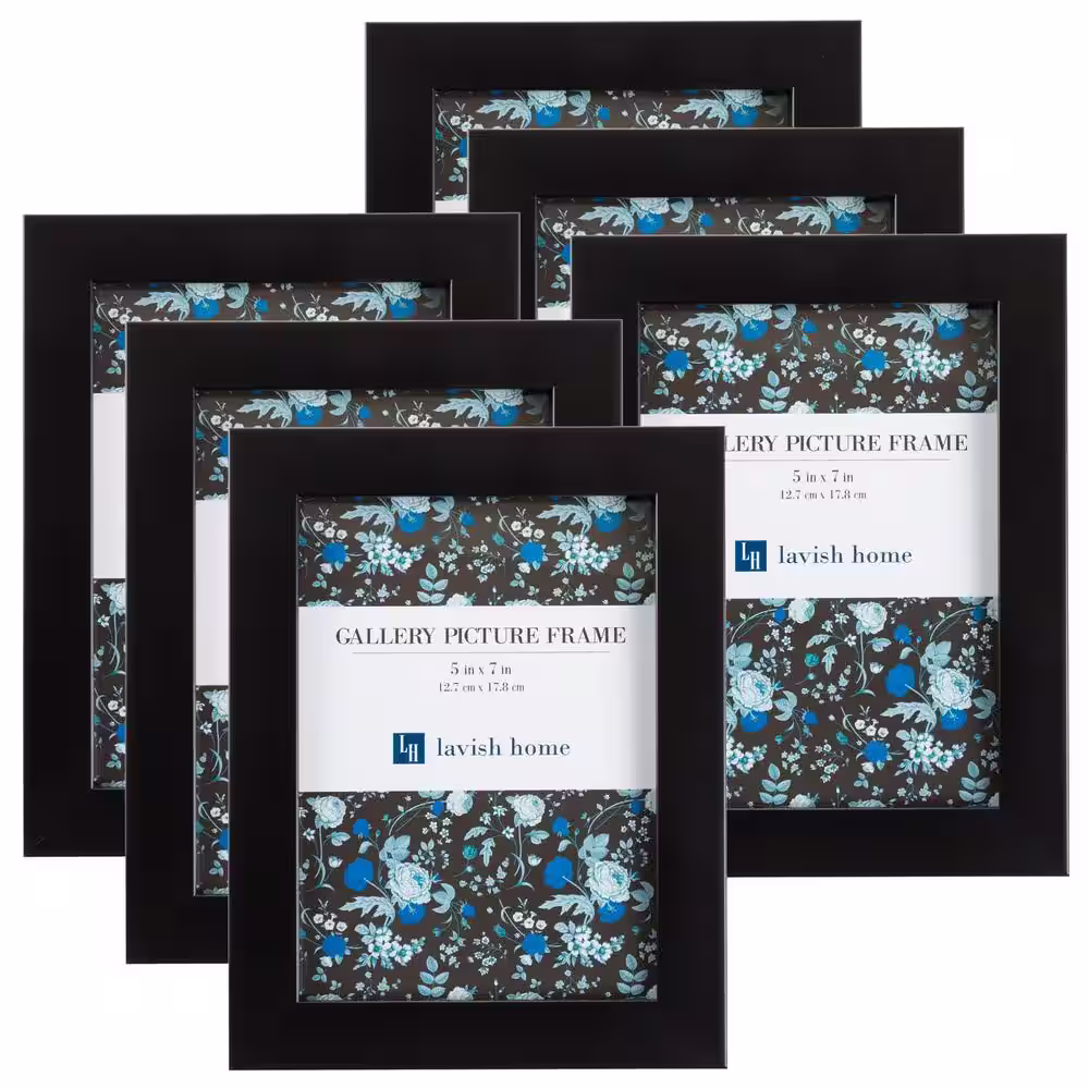 Lavish Home 5 in. x 7 in. Black Picture Frame (6-Pack)