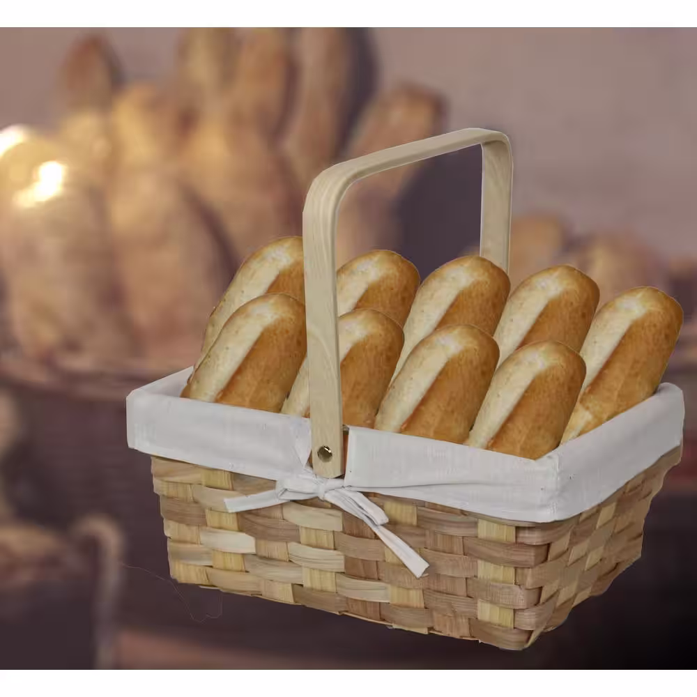 Vintiquewise 12 in. x 5.5 in. x 8.25 in. Rectangular Woodchip Picnic Basket Lined with White Fabric