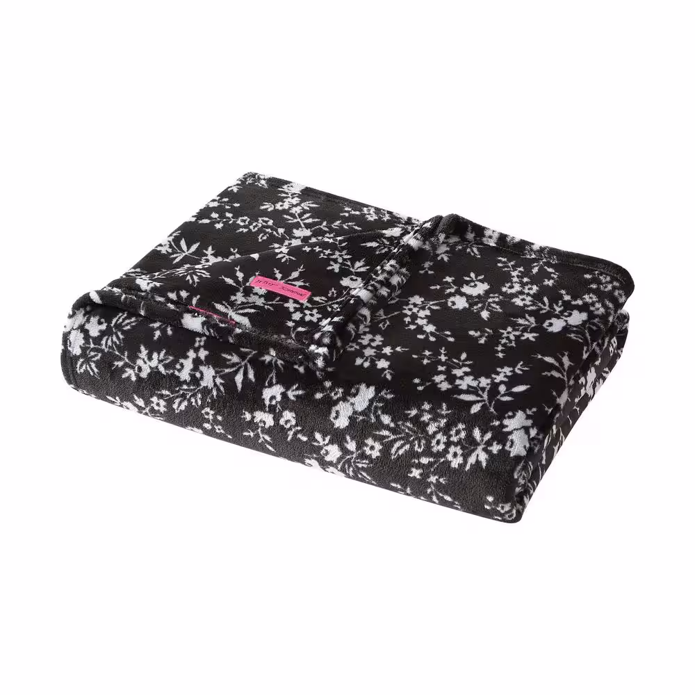 BETSEY JOHNSON Pretty Floral 70 in. x 50 in. Ultra Soft Plush Black Microfiber Throw Blanket