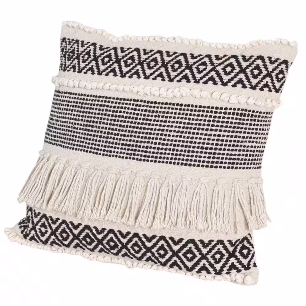 THE URBAN PORT Beige and Black Trimmed Shaggy Fringe Accents Cotton Accent 18 in. x 18 in. Throw Pillow (Set of 2)