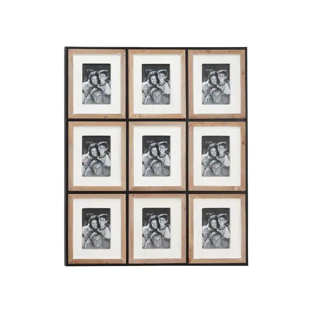 Litton Lane 5 in. x 7 in. Large Metal and Wood Wall Art Photo Display with 9 Rectangular Wood Picture Frames