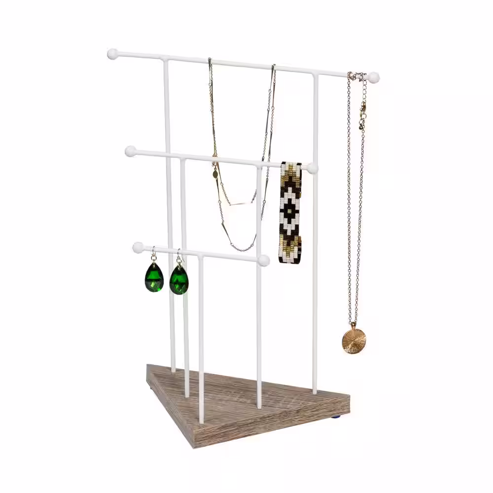Honey-Can-Do 3-Tier White Geometric Jewelry Stand