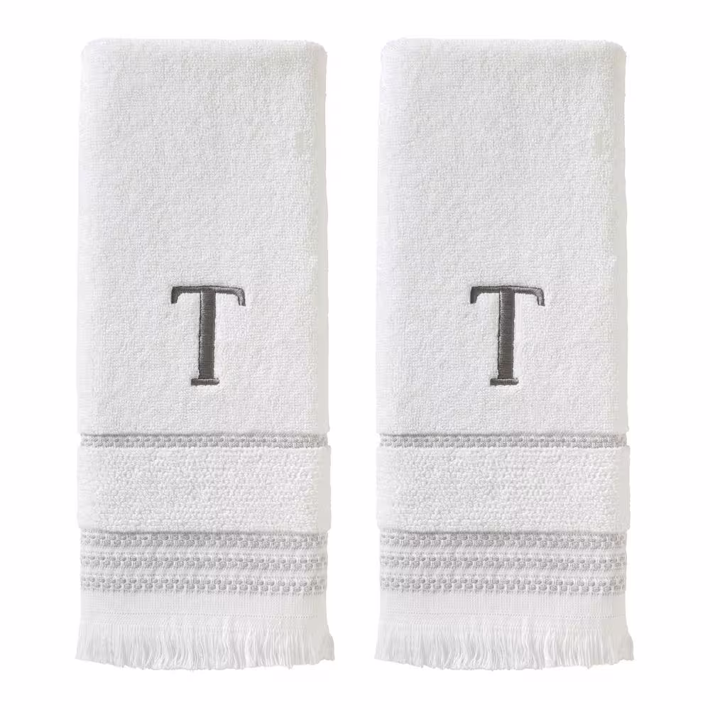 SKL Home Casual Monogram Letter T Hand Towel 2 piece set, white, cotton