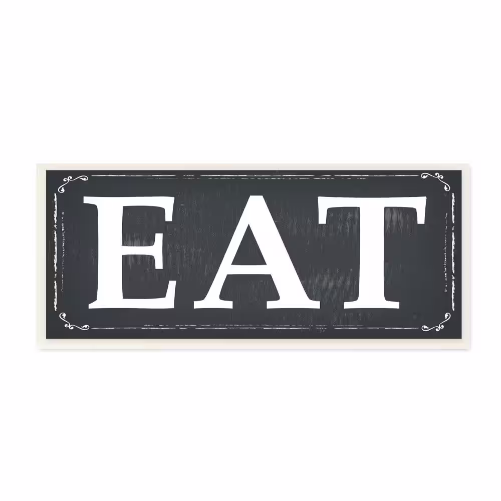 Stupell Industries 7 in. x 17 in. "EAT Black and White" by ND Art Printed Wood Wall Art