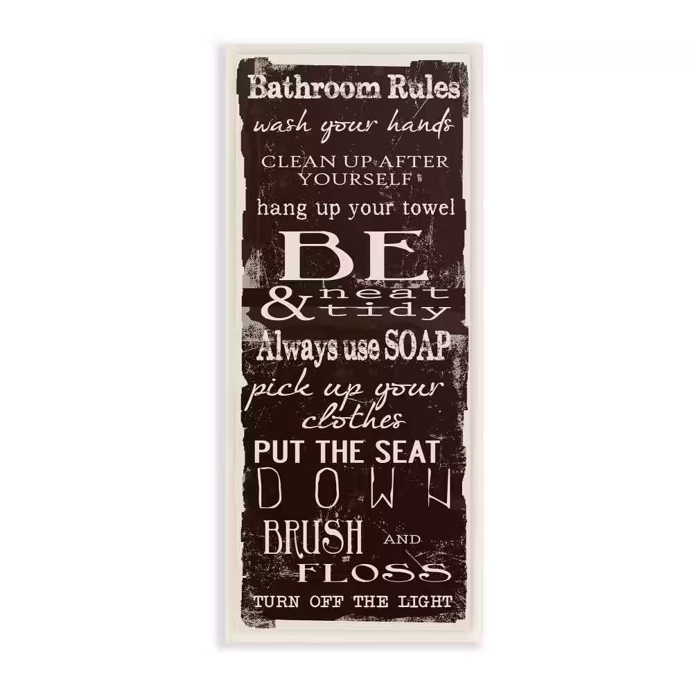 Stupell Industries 7 in. x 17 in. "Bathroom Rules Chocolate White" by Taylor Greene Printed Wood Wall Art