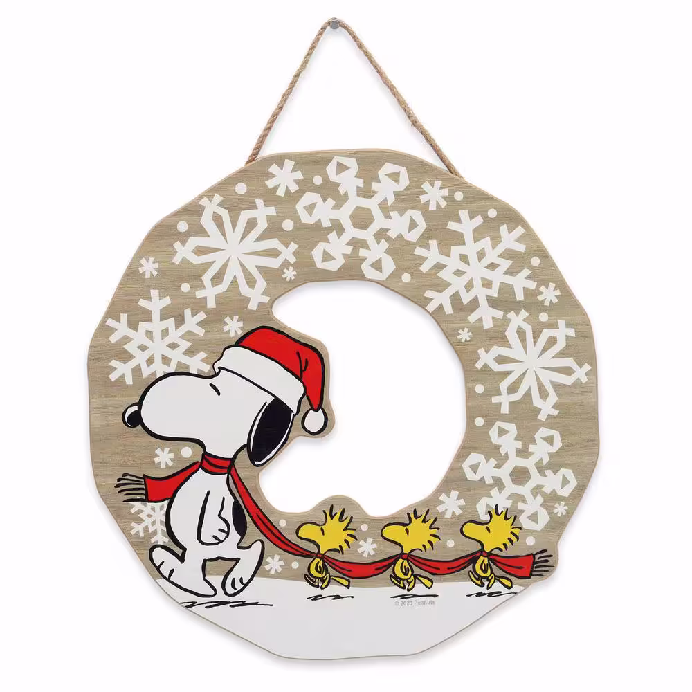 Peanuts Snoopy and Woodstock Snowflake Wreath Christmas Hanging Wood Decorative Sign