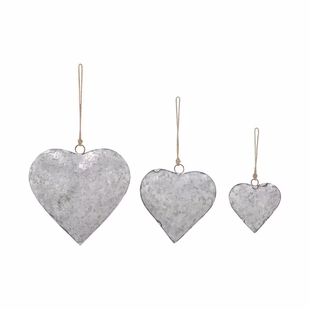 Litton Lane Gray Metal Heart Decorative Bell with Hanging Rope (3- Pack)