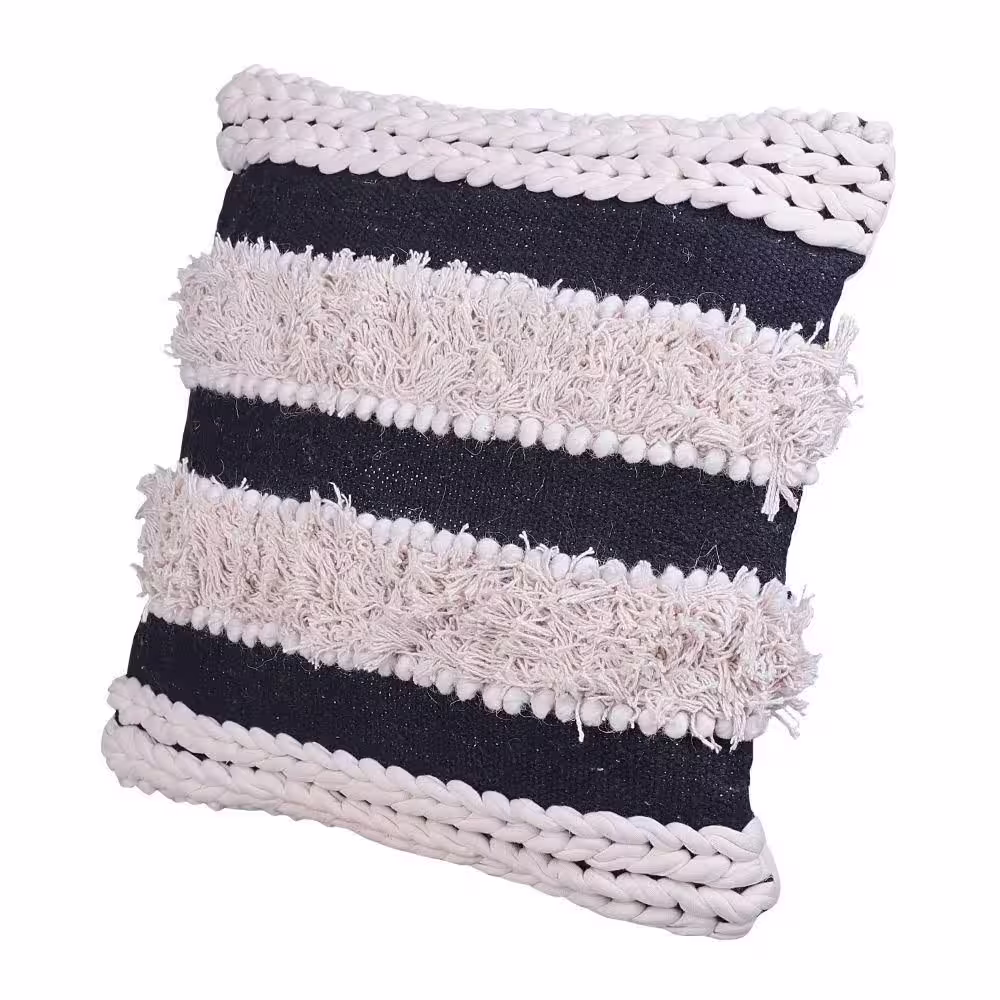 THE URBAN PORT Adiv White and Black Handknit Yarn Handcrafted Soft Shaggy Cotton Accent 18 in. x 18 in. Throw Pillow (Set of 2)