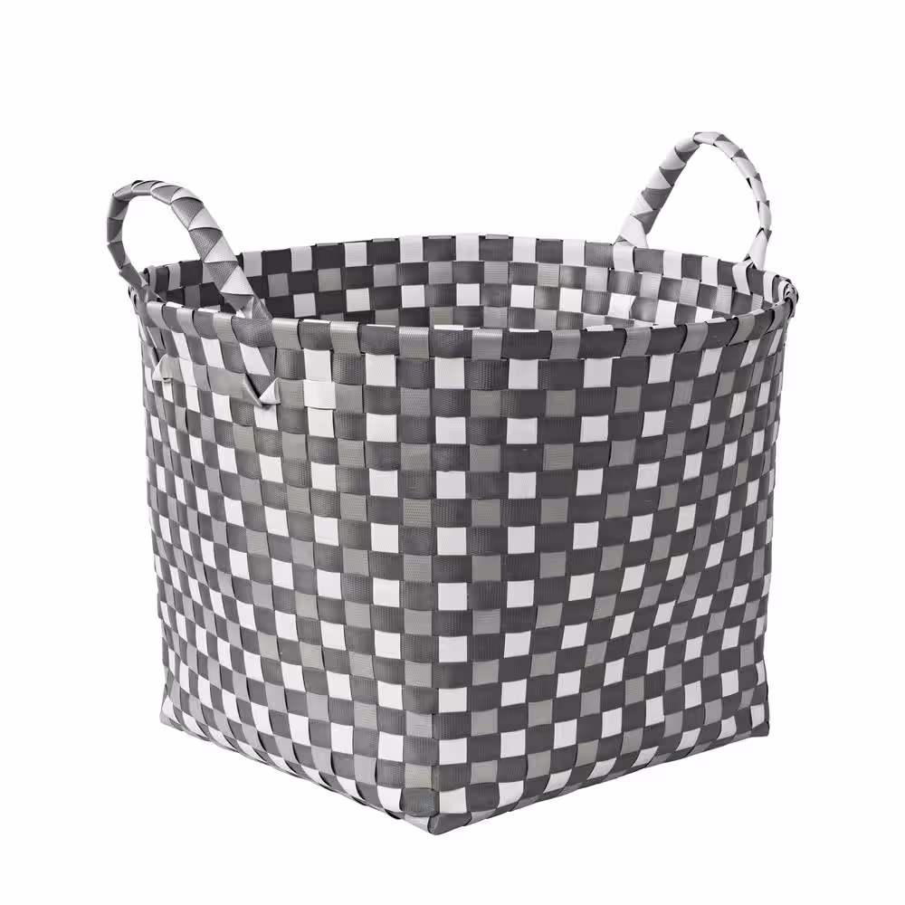 Honey-Can-Do 10.5 in. x 6 in. H PP Resin Weave Basket in Blue and White