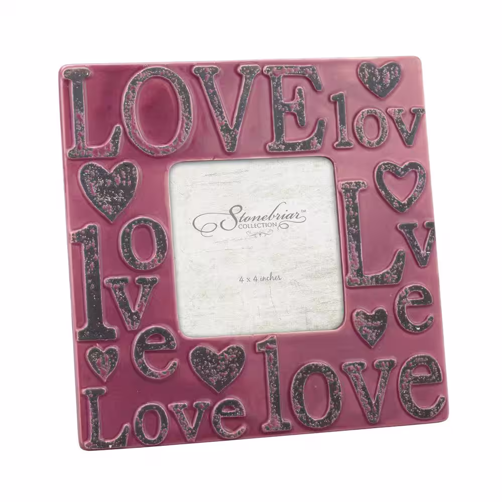Stonebriar Collection 1-Opening 4 in. x 4 in. Worn Marsala Ceramic Love Picture Frame