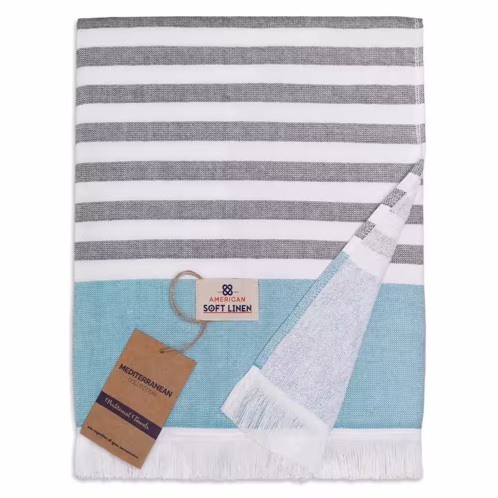 American Soft Linen Peshtemal Beach Towels, Turkish Terry 35x60 Inches, Decorative Towels, Sky Blue