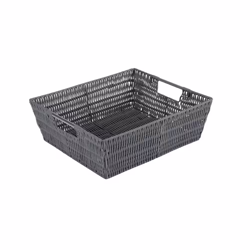 SIMPLIFY 5 in. x 13 in. Gray Shelf Storage Rattan Tote Basket