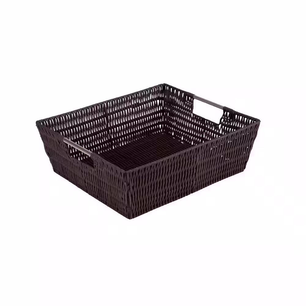 SIMPLIFY 5 in. x 13 in. Brown Shelf Storage Rattan Tote Basket