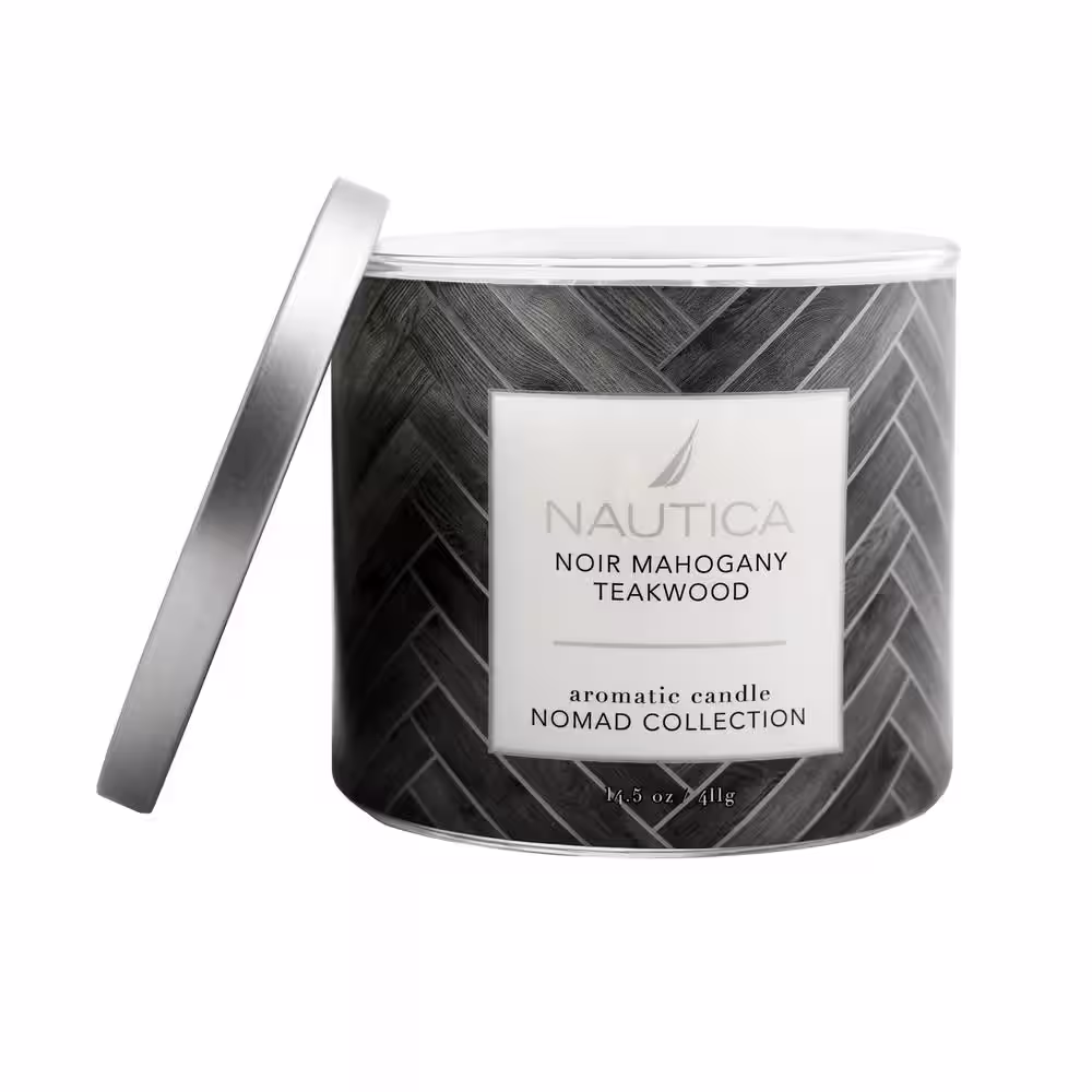 Nautica 14.5 oz. Noir Mahogany Teakwood Multi-Colored Linen 3-Wick Jar Candle
