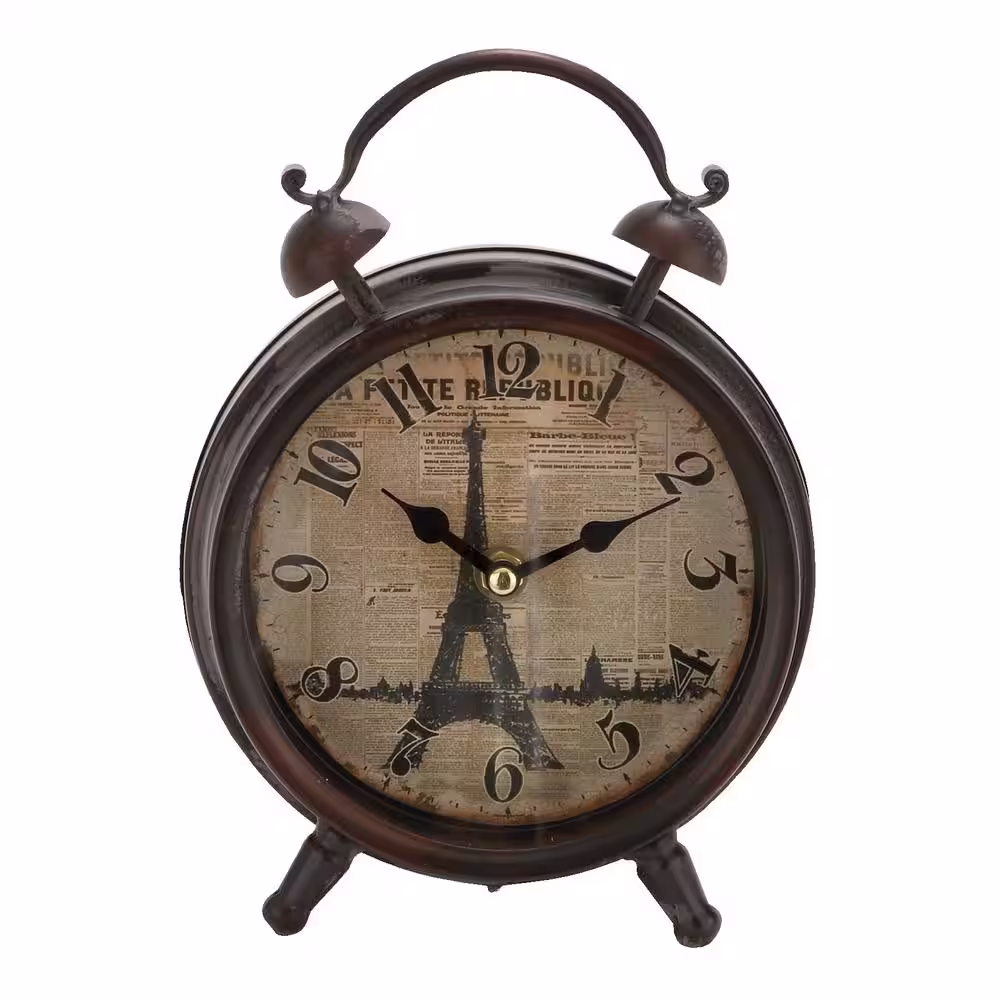 Litton Lane Black Metal Eiffel Tower Analog Clock with Bell Style Top