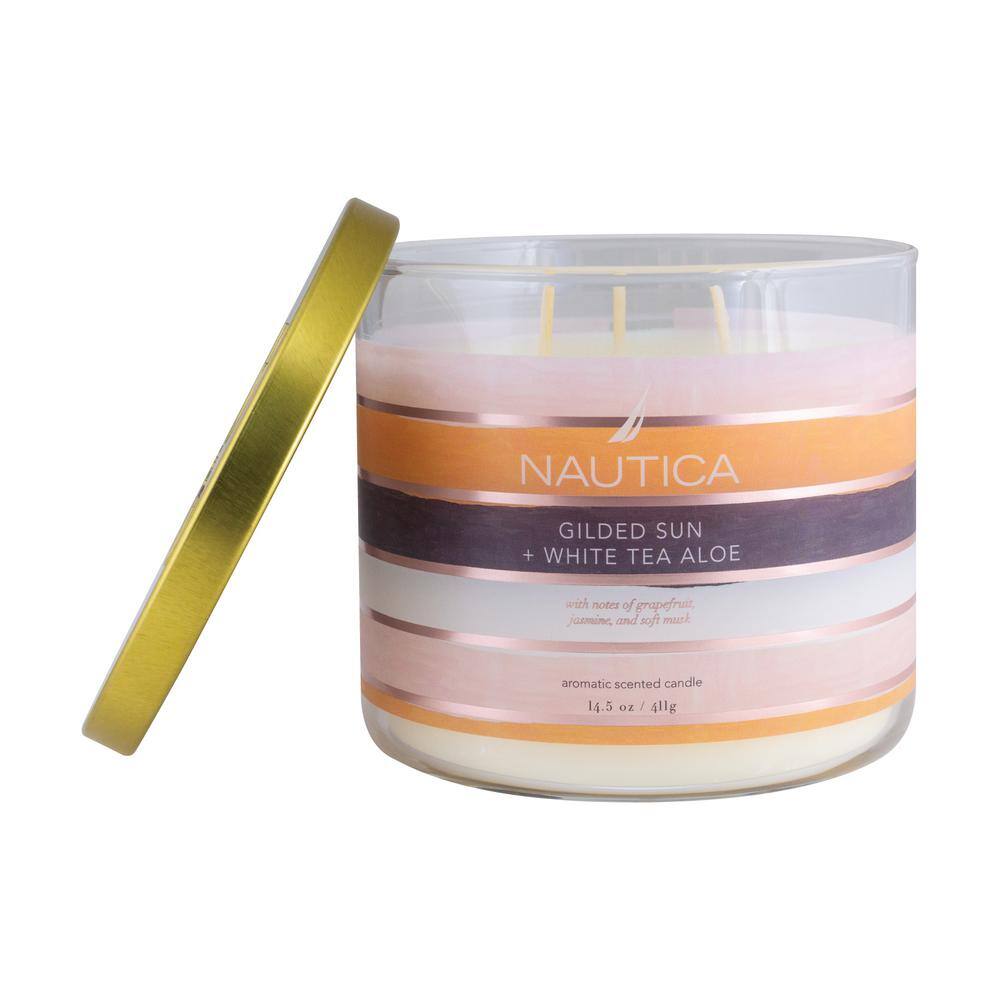 Nautica 14.5 oz. Gilded Sun and White Tea Aloe Multi-Colored Fresh 3-Wick Jar Candle
